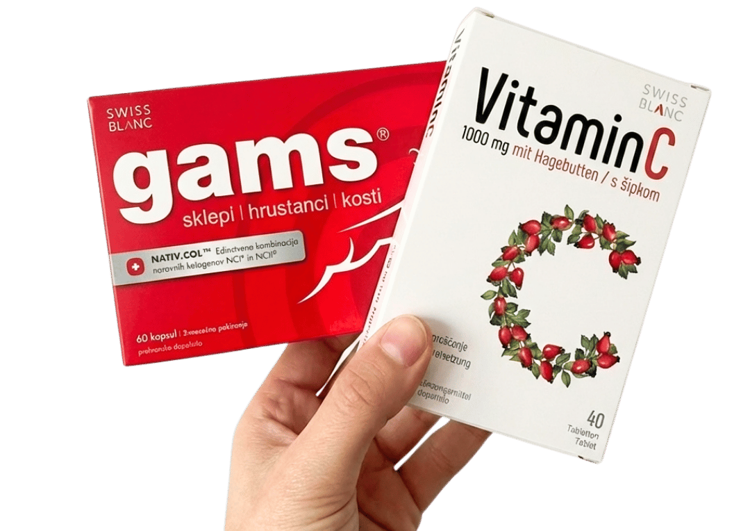 Swiss Gams za podporo zdravju vaših sklepov, prispeva k tvorbi kolagena v hrustancu.